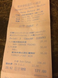 Also ich sollte endlich aufhören Wein zu trinken in China….. aber dieses Bier hat es mir längerfristig einfach nicht angetan und zu gutem Essen gehört einfach ein Glas Wein. Heutiges Preisratio Essen (39%) / Wein (61%) lief wieder mal völlig aus dem Ruder… aber alles in allem immer noch ok wenn man vergisst, wie günstig man auf dem Nightmarket essen könnte.