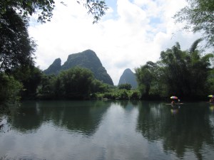 Angekommen beim Moon Hill Mountain hiess es 800 Stufen in einem Bamboowald hochsteigen – das Klima war wie in der Masoala Halle. Gestern komplett nass vom Regen, heute nur von der Luftfeuchtigkeit…… ha ha.  Oben angekommen genoss ich die Aussicht über den Li River und natürlich die omnipräsenten Karstfelsen.