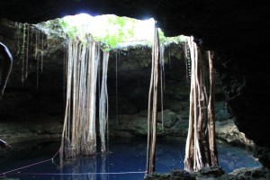 In order to access the cenote, we had to climb down with the help of a liana and through a short dark cave where on the other end unveiled the view of the denote….. a bit spooky.