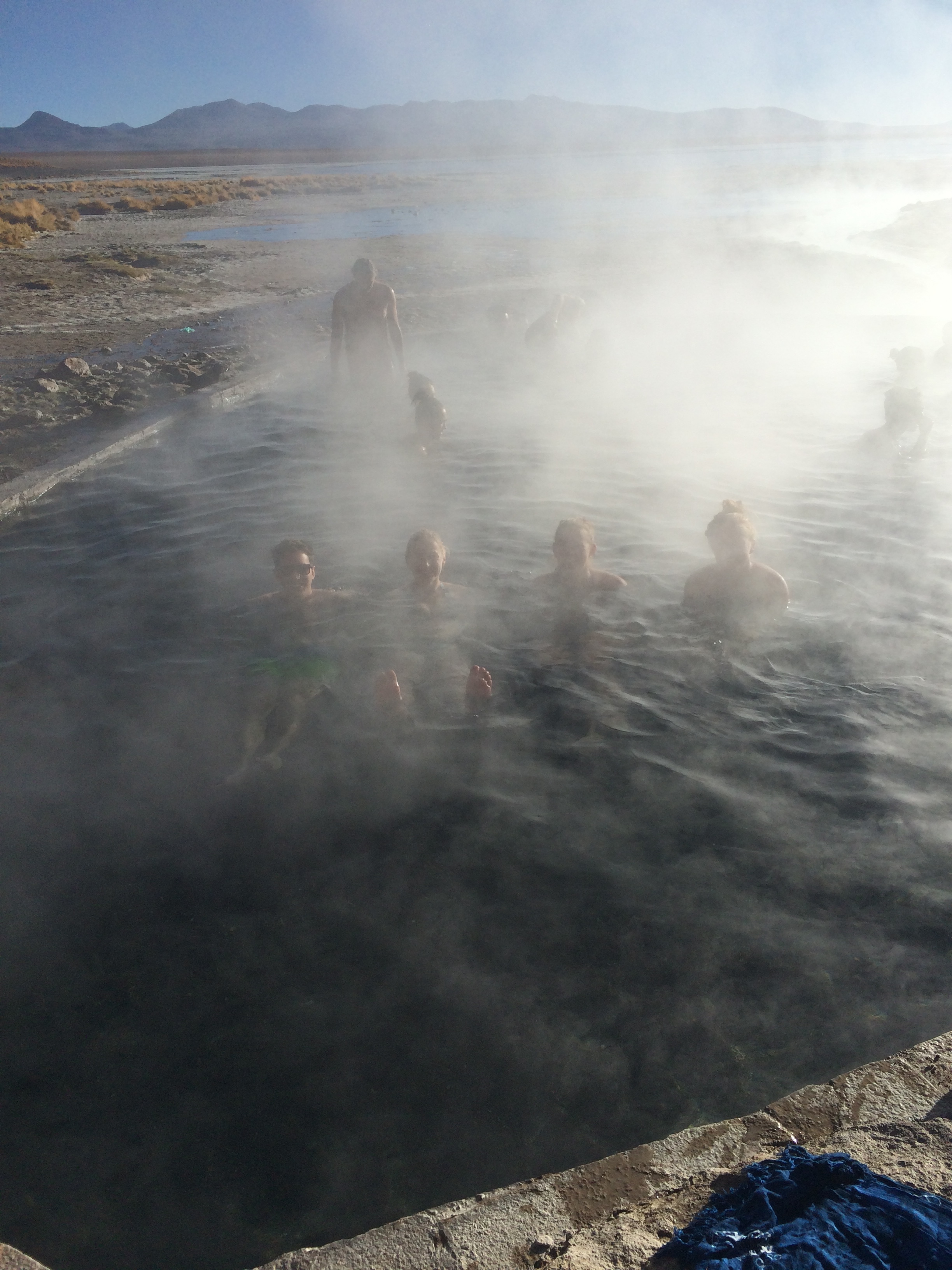 On the third day we had to get up super early in order to ensure we arrive at the geysers before the sunrise as they are the most active at low temperatures. When we put our bags back on the roof of the jeep it was truly freezing… the driver/mechanic/cook meant it was around -8. I think he exaggerated but for sure it was cold. But the geysers were waiting for us, the sunrise was ‘on hold just for us’ and the hot springs as well. ..and we didn’t get disappointed, the geysers were steaming and bustling and the aguas calientes were steaming hot.