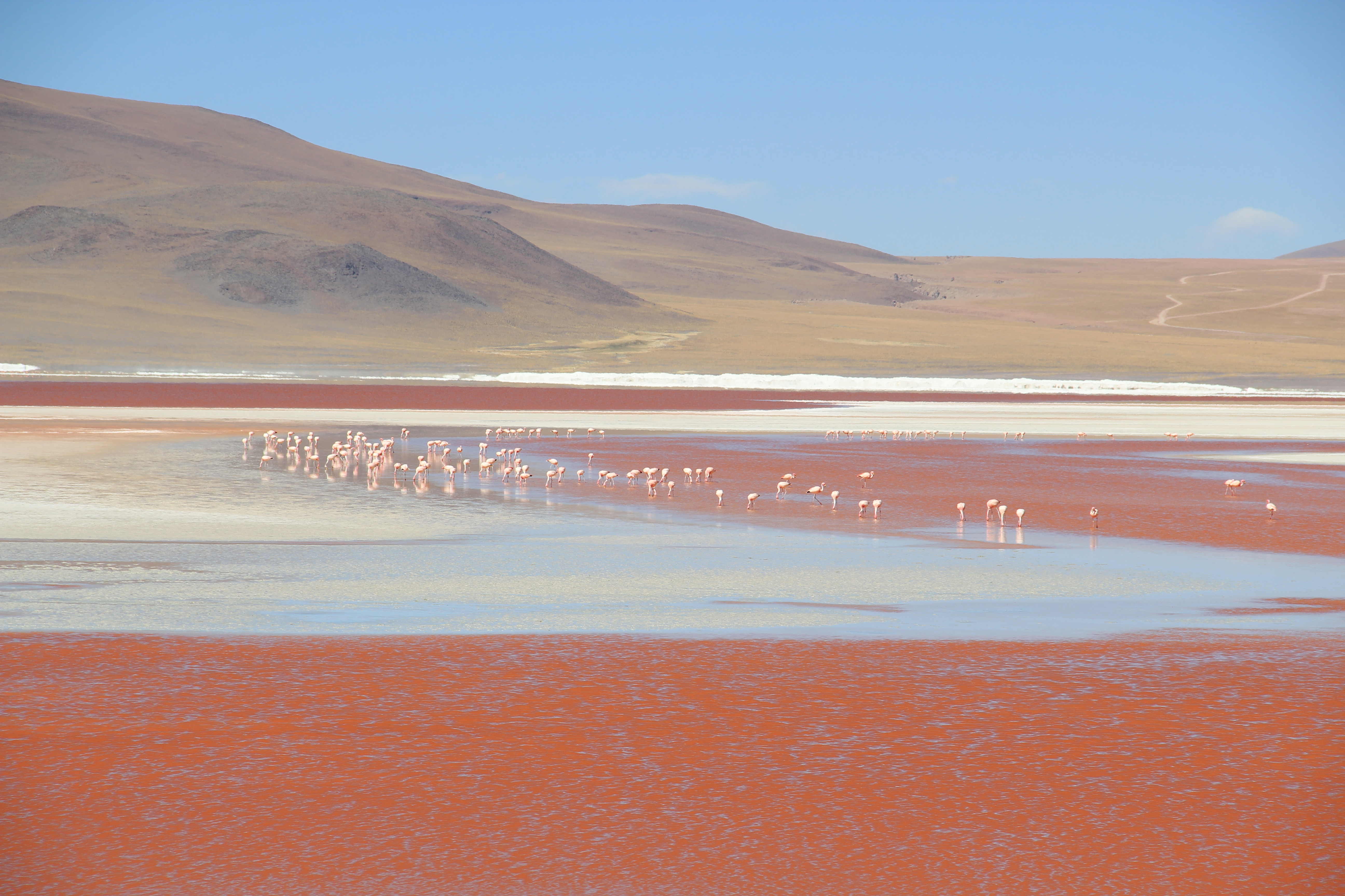 Then a number of Lagunas followed on the second day, i really cannot remember anymore exactly which one is which but they had such beautiful names as Laguno Rojo, Laguna Blanca, Laguna Verde and the Laguna Colorada which changes it’s colour depending on sunlight, content of minerals and algies in the water. The latter is also known as the home of approx 30,000 flamingoes. Well honestly i think there were a few hundreds there when we arrived – but let’s believe this is true.