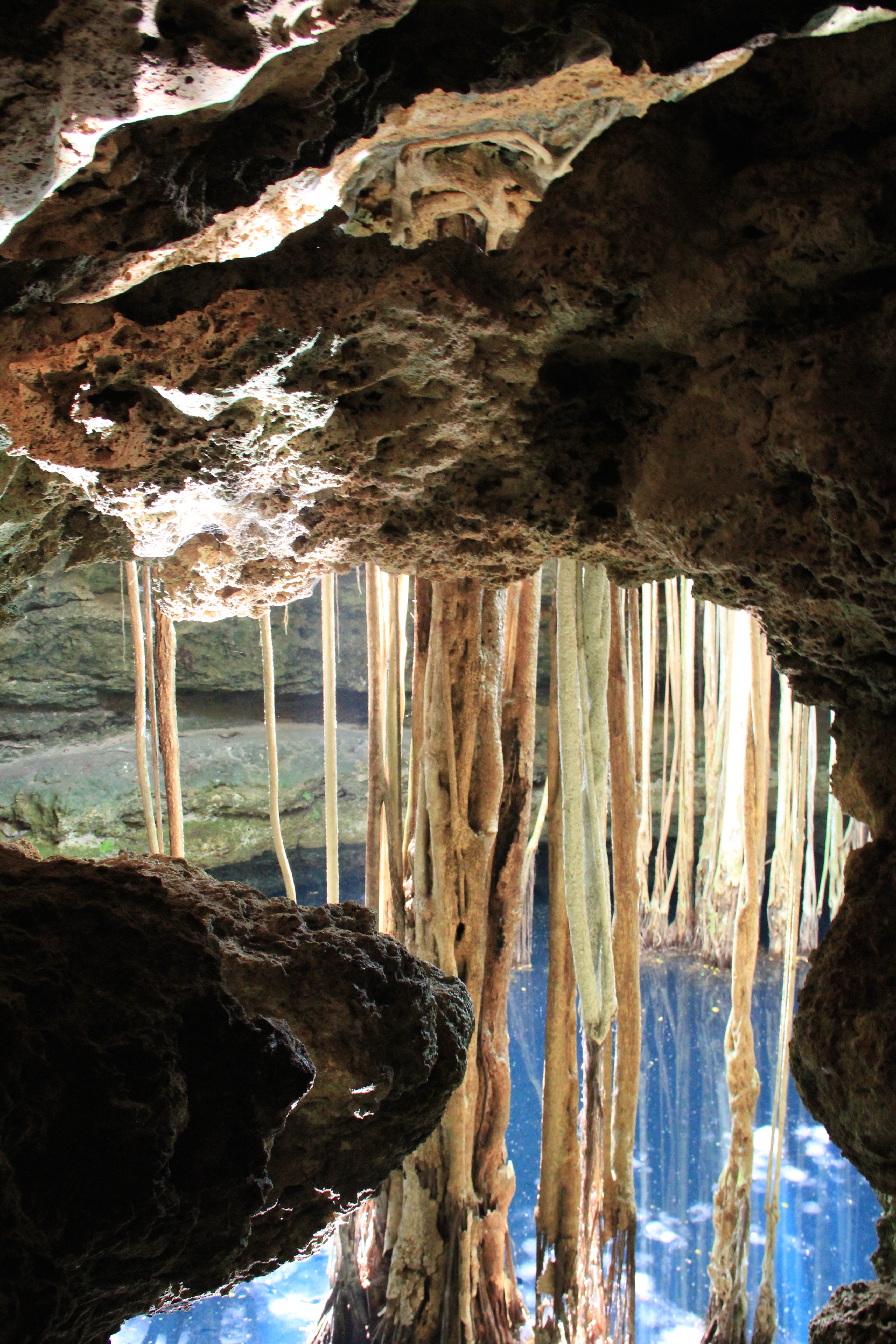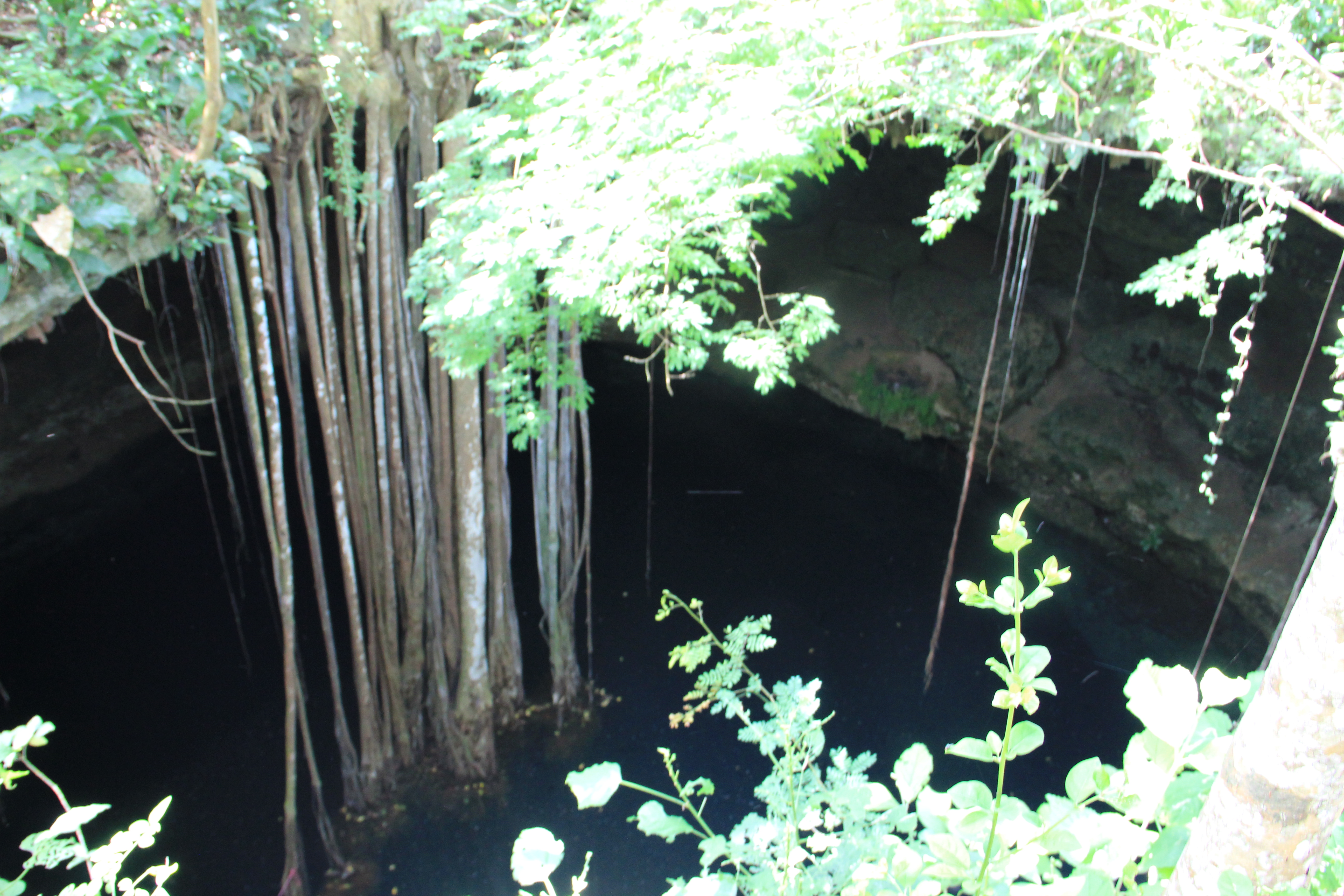 In order to access the cenote, we had to climb down with the help of a liana and through a short dark cave where on the other end unveiled the view of the denote….. a bit spooky.