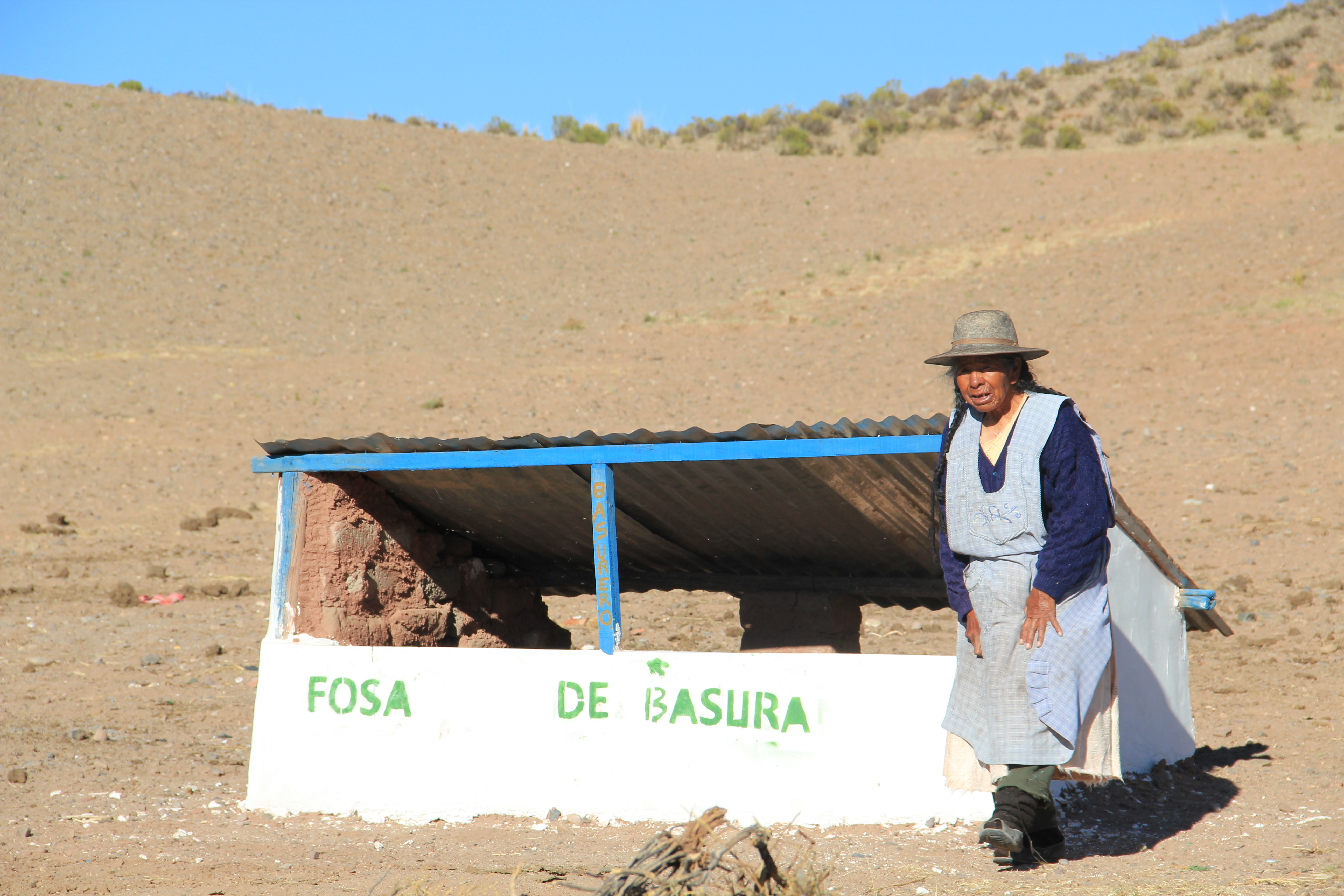 Our first stop was in Conchacollo in the area of San Andres de Machaca where we met the first families who joined the programs ‘vivienda saludable’ and ‘agua familiar productiva’. It was overwhelming to see how happy the people were to meet us and showing us proudly there homes which they had improved with the help of the Suyana team as well as the satiris. There were significant changes they had undertaken in order to transform their lifestyle into a healthier, sustainable yet independent way. Mostly it required them to construct additional houses in order to meet all the requirement as previously they would often live in one single house combining kitchen, dormitory and living room. With the assistance of Suyana they would construct a new cooker (Fugon) with a chimeny to get rid of the smoke in the kitchen, help them to construct a ‘refrigerador ecologico’ by means of wrapping a shelf with plastic sheets and putting a bucket of water on the ground helping to keep the vegetables, fruits and cheese cooled by taking advantage of the cold nights. At the same time many families got so happy with the improvements so that they constructed a sink to do the washing up as well as a ‘comedor’ to enjoy the meals with the family. One man said: ‘i wanted to construct the kitchen in a way to facilitate my wifes work as much as possible’. I really loved this statemet!