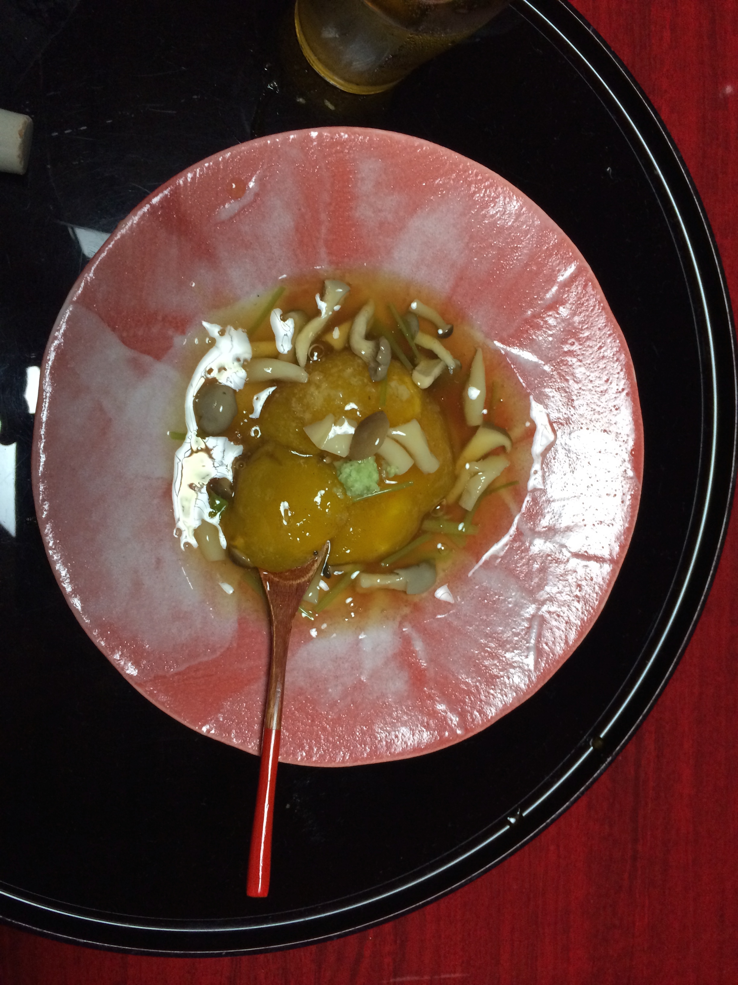 So off we went to discover more of Kyoto’s treasures such as the Nanzen-ji. A Zen temple with the classic dry gardens, where they make patterns in the gravel, build cones from sand and even this one had a small pond all carefully fitted together like one big painting. As you can see in the ‘gardening pic’ – there is not much about meditating when actually making it…
