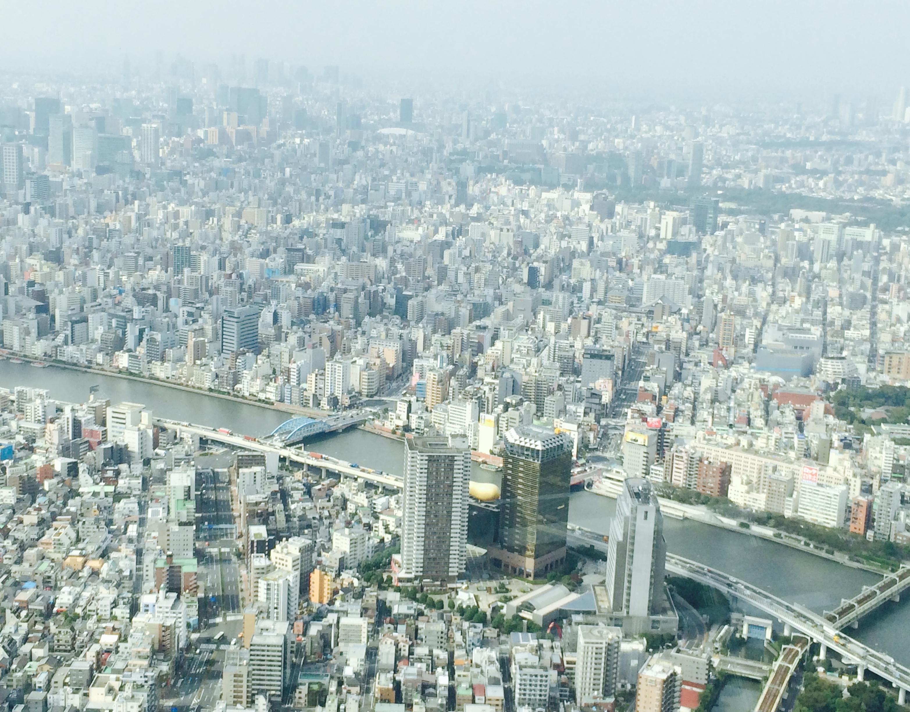 Gestern und heute habe ich noch die letzten Touri-highlights von Tokyo abgeklappert… der Skytree ist mit einer Gesamthöhe von 634m weltweit das 2. höchste Gebäude (Platz 1 ist Burj el arab). Das tolle war, dass ich um dorthinzukommen, wieder mal die gesamte Palette der Tokioter Verkehrsbetriebe in Anspruch genommen habe… unglaublich, aber es gibt etwa 5 verschiedene und die Tickets sind nur teilweise kompatibel… einfach brav Tickets kaufen ha ha. Aber der Ausblick von der 450m Plattform ist atemberaubend!
